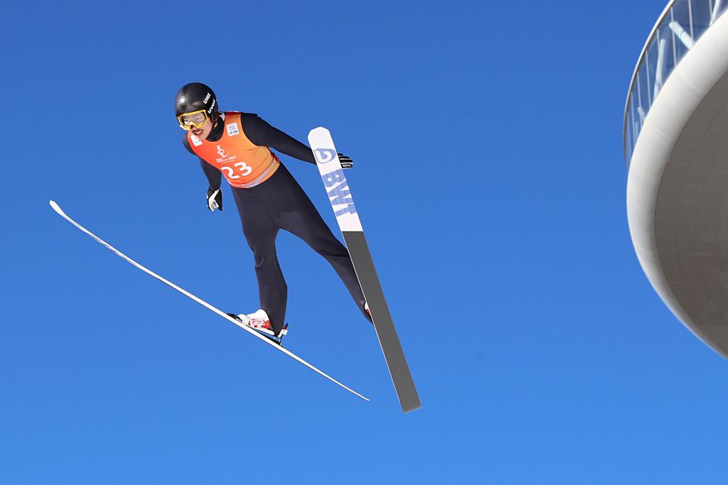 本次“十四冬”的北歐兩項(xiàng)比賽,在北京冬奧會的競賽場館國家跳臺滑雪中心和國家冬季兩項(xiàng)中心舉行,設(shè)置個人標(biāo)準(zhǔn)臺+10公里越野滑雪、個人大跳臺+10公里越野滑雪、男子團(tuán)體大跳臺+4X5公里越野滑雪接力賽共三個小項(xiàng),吸引了41名選手參賽。