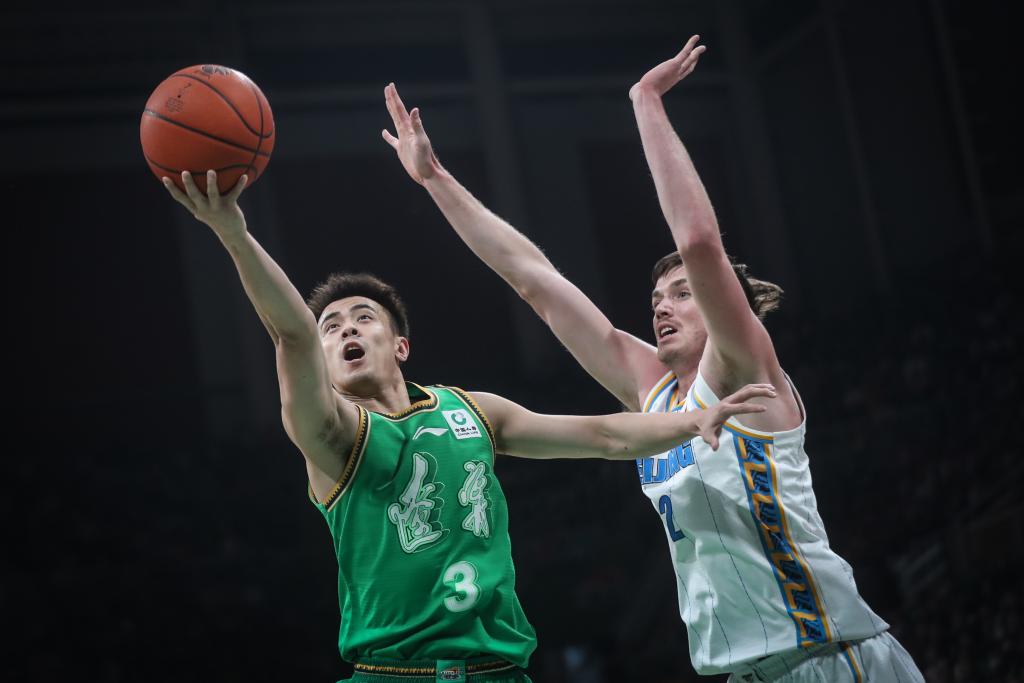 2月5日,遼寧隊(duì)球員趙繼偉(左)在比賽中上籃。新華社記者 潘昱龍 攝