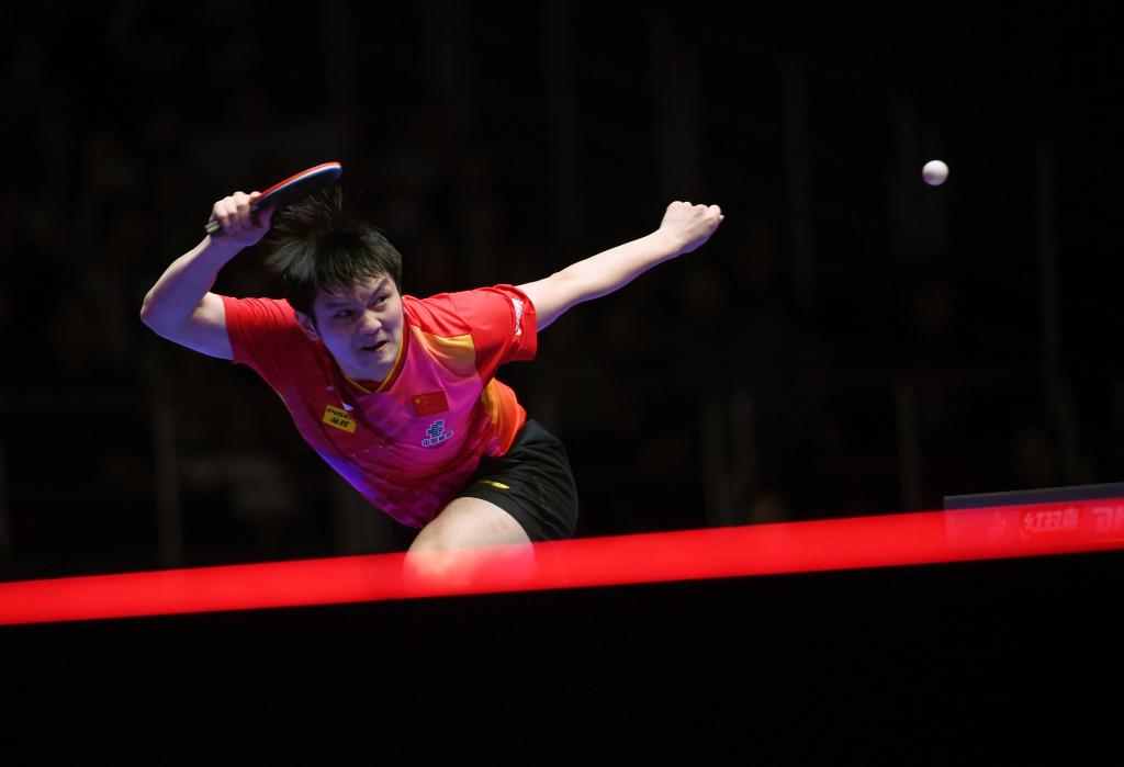 2月22日,樊振東在第一盤比賽中回球。新華社記者 陶希夷 攝