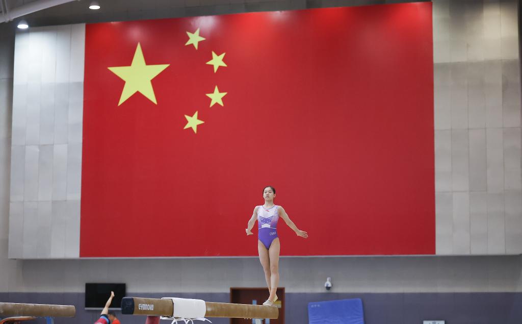 5月8日,中國體操隊隊員歐鈺珊在訓練中。新華社記者 曹燦 攝