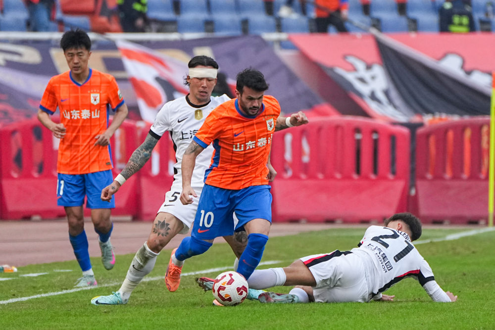本輪比賽開始前,排名榜首的上海海港僅領(lǐng)先第二名成都蓉城2分。上海海港本輪客場對(duì)陣山東泰山,開場不久由李新翔打進(jìn)一球,取得領(lǐng)先。但隨后山東泰山迅速調(diào)整,并逐漸掌握主動(dòng)。第41分鐘,山東泰山外援澤卡反擊中突破送出斜傳,卡扎伊什維利跟進(jìn)殺入禁區(qū)低射,將比分扳為1:1。