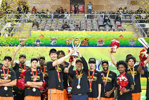 2月12日,冠軍上海久事隊(duì)在頒獎儀式上慶祝。新華社記者 貝赫 攝