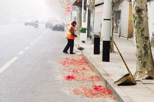 45歲的環(huán)衛(wèi)工張秀生告訴筆者,“越是節(jié)假日,越不能停歇,把路面收拾得干干凈凈,老百姓走著舒坦,我心里也高興。”這幾天風(fēng)大天冷,張師傅卻干得特別有勁。不到2個(gè)小時(shí),城區(qū)健康中街周邊的垃圾全部清理干凈?!白蠲Φ臅r(shí)候就是下午四五點(diǎn)鐘,路上的垃圾數(shù)量明顯增加?!睆垘煾嫡f,有時(shí)他一直忙到晚上6點(diǎn)才回家,第二天早上,不到4點(diǎn)他就從床上爬起來了。據(jù)悉,春節(jié)期間,城區(qū)的環(huán)衛(wèi)工人基本全部在崗,許多環(huán)衛(wèi)工人甚至提前到崗清掃街道,確保市容整潔。張師傅希望市民們春節(jié)燃放鞭炮時(shí)不僅要注意安全,還要保護(hù)環(huán)境衛(wèi)生。