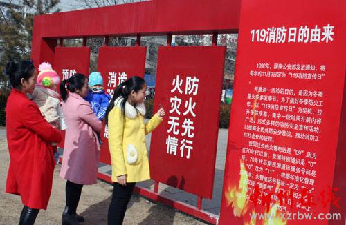 2月25日,原平市民正在119消防文化主題公園觀看、了解、學(xué)習(xí)消防安全與火災(zāi)防范知識。為進(jìn)一步推進(jìn)社會化消防宣傳工作,原平市為廣大市民打造了一個寓教于樂、主題鮮明的消防宣傳教育平臺。整個公園具有鮮明的消防主題特色,集觀賞性、教育性為一體,可使廣大市民在休閑娛樂中,了解如何防范、應(yīng)對火災(zāi)發(fā)生,以及如何進(jìn)行火場逃生等基本常識。(趙春曉 攝)