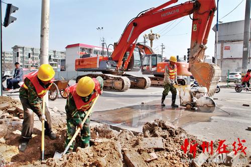 圖為勝利街改造工程開(kāi)挖道路管線探槽現(xiàn)場(chǎng)(梁春霞 攝)