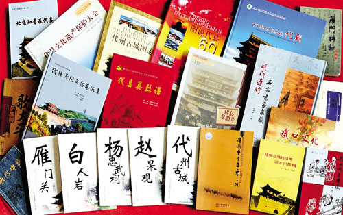 由程培甫、馮祥主編的《雁門碑抄》收錄了唐代以來(lái)鐫刻在代縣各地的古碑碑文98篇,詔、敕、封誥19篇,從不同的側(cè)面反映和記錄了代縣悠久的歷史和博大的文化內(nèi)涵,是挖掘、整理、弘揚(yáng)雁門文化極其珍貴的歷史資料。由王文藻主編的《雁門詩(shī)抄》,分“人物篇”和“形勝篇”兩本?!叭宋锲眳R集了有詩(shī)詠代的代州人,或在代地作過(guò)官,或因事涉足過(guò)代地的83位歷史人物和詠贊他們的230首詩(shī)詞,意在讓今人了解古人的業(yè)績(jī)政聲,學(xué)習(xí)古人的品格情操?!靶蝿倨眲t收集了歷代仕宦、詩(shī)人、騷客、雅士游覽代州時(shí)寫下的300多首詠贊代州壯美山河、名樓勝跡的古代詩(shī)詞,意在讓今人更好地挖掘、了解、弘揚(yáng)博大精深的雁門文化,推動(dòng)代縣旅游事業(yè)的發(fā)展,促進(jìn)縣域經(jīng)濟(jì)的振興。2008年由山西人民出版社出版的《代縣老照片》,收集了代縣從清朝末年到上世紀(jì)50年代拍攝的360多幅珍貴的歷史照片,分為古城遺跡、雁門雄關(guān)、教育篇章、代商風(fēng)采、社會(huì)百態(tài)、名人佚事、革命史詩(shī)等七個(gè)篇章,結(jié)為一集。翻閱這些泛黃的老照片,讀者可以欣賞文化名城宏偉壯觀的古老建筑,瞻仰歷史名人的風(fēng)姿俊采,領(lǐng)略代州驕子的雄才大略,感受有識(shí)之士的宏圖大志,體會(huì)莘莘學(xué)子的凌云壯志……透過(guò)這些老照片,我們既能追尋歷史,更可展望未來(lái)。2009年出版的《圖說(shuō)代縣60年》,以編年體的形式,按照時(shí)間順序,選取每年在代縣大地上發(fā)生的重大事件、重要人物,或是能真實(shí)反映當(dāng)時(shí)當(dāng)?shù)鼐哂袝r(shí)代特色、風(fēng)土人情的歷史照片780多幅,配以簡(jiǎn)明扼要的文字說(shuō)明,形象生動(dòng)地再現(xiàn)了新中國(guó)成立60年來(lái)代縣發(fā)展變化的歷史進(jìn)程,是新中國(guó)60年發(fā)展變化的一個(gè)縮影。它所包含的信息和所起到的作用會(huì)超越時(shí)空,成為后人認(rèn)識(shí)歷史演變的生動(dòng)教材。同年出版的《代縣古城圖志》則以圖文并茂的形式,向讀者介紹了代州古城的歷史沿革、代州古城的城垣、街衢、商貿(mào)、衙廨、教育、寺廟、風(fēng)俗風(fēng)物、歷史人物等內(nèi)容,展示了古代州悠久的歷史和深厚的文化底蘊(yùn),為人們提供了一個(gè)了解代州古城的窗口。