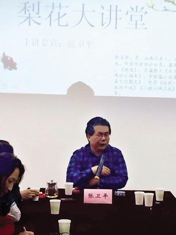 農(nóng)家出身的張衛(wèi)平來(lái)自代縣基層,現(xiàn)為中國(guó)作家協(xié)會(huì)會(huì)員,著有長(zhǎng)篇小說(shuō)《給我一支槍》、《絕唱》,長(zhǎng)篇散文《走馬雁門》,短篇小說(shuō)集《童年的小搖車》、中短篇小說(shuō)集《野魂》,電影《給我一支槍》、《浴血雁門關(guān)》、《血戰(zhàn)午城》、《人祖山保衛(wèi)戰(zhàn)》,電視連續(xù)劇《大宗師》。在這次“梨花大講堂”文學(xué)講座上,張衛(wèi)平從文學(xué)的載體切入,縱論了從口頭文學(xué)到紙質(zhì)文學(xué)、影視文學(xué)、網(wǎng)絡(luò)文學(xué)的演變發(fā)展;結(jié)合自己的創(chuàng)作感悟,站在技術(shù)層面,從語(yǔ)言、人物、情感、結(jié)構(gòu)、思想五個(gè)高度闡述了對(duì)文學(xué)的判斷;站在藝術(shù)的境界,分情感、歷史、精神三大板塊,講解了作品提升的高度。該市偵探小說(shuō)作家狄保壽感到張衛(wèi)平的講解切中了文學(xué)創(chuàng)作的要害,讓大家明白了如何提高文學(xué)創(chuàng)作水平的道理。青年文學(xué)愛(ài)好者李詠梅表示要按照張衛(wèi)平老師的講授,不斷努力,寫出更好的文學(xué)作品。該市文聯(lián)主席鄭建芳告訴記者:“梨花大講堂要形成常態(tài)化,為提升全市文學(xué)創(chuàng)作隊(duì)伍整體素質(zhì)發(fā)力。”(藺紅)