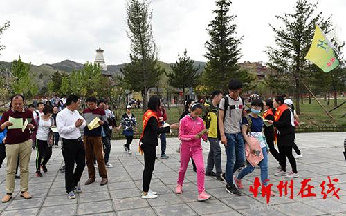 4月30日,五臺(tái)山風(fēng)景區(qū)愛(ài)心志愿者正在向游客免費(fèi)發(fā)放旅游地圖和服務(wù)指南(2)。