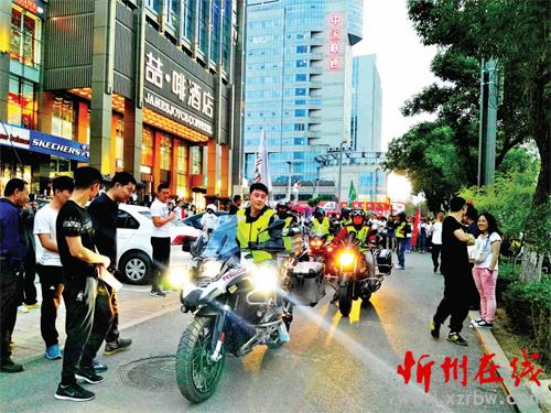 本次“熒光跑”活動(dòng)由開來欣悅購物廣場主辦,忻州藍(lán)天救援隊(duì)、秀容騎士摩托騎行隊(duì)和愛心公益大聯(lián)盟等眾多志愿者隊(duì)伍為該活動(dòng)全程提供安全保障,大家用“熒光跑”這種獨(dú)特的方式表達(dá)著對家鄉(xiāng)忻州的熱愛。圖為摩托騎行隊(duì)為“熒光跑”開道(魯明強(qiáng) 米成?。?/p>