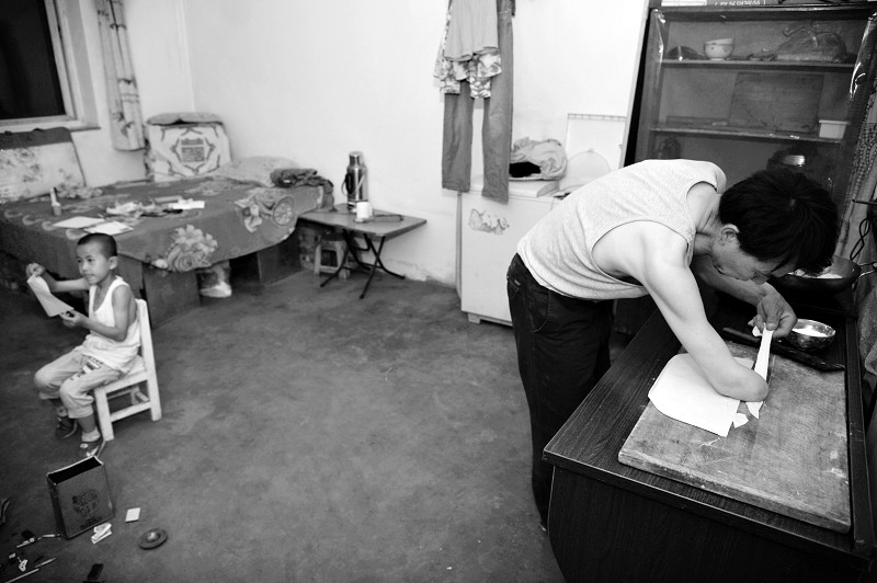 王貴生給兒子做面條。