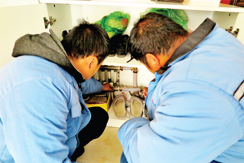 圖為鳳凰苑供熱區(qū)工作人員入戶檢查室溫。