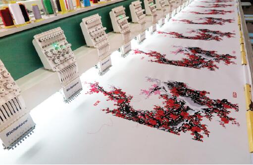 走進(jìn)天津?qū)氂娔X機(jī)械有限公司的大門,迎面正對的是辦公綜合樓,樓頂中央聳立著“富怡(Richpeace)”注冊商標(biāo),樓頂從左至右用紅字排列著公司的主要產(chǎn)品種類:“電腦繡花機(jī)”“電腦絎縫機(jī)”“電腦絎繡機(jī)”“激光切割雕刻設(shè)備”“服裝CAD軟件”“繪圖儀”“切割機(jī)”“鋪布機(jī)”“電腦裁床”“全自動縫紉機(jī)”。