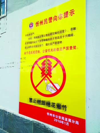 近日,細(xì)心的市民一定會(huì)注意到,各居民小區(qū)都張貼了春節(jié)期間禁止燃放煙花爆竹的民警提示。作為城市的一員,廣大市民一定要遵守《忻州城區(qū)禁止燃放煙花爆竹規(guī)定》,令行禁止,以實(shí)際行動(dòng)保衛(wèi)城區(qū)來(lái)之不易的良好大氣環(huán)境,過一個(gè)文明的春節(jié)。(魯明強(qiáng) 攝)