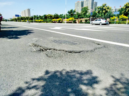 城區(qū)雁門大道南街與團(tuán)結(jié)中街北巷交叉路口,有一下水井蓋周邊嚴(yán)重破損,多處裂縫,存在安全隱患。希望有關(guān)部門盡快予以修補(bǔ)。張林全 攝于8月24日