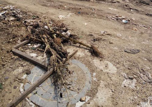 一位村民指著西面被垃圾包圍的一個(gè)鐵皮焊接成的小門說:“這就是我們?nèi)迦顺运乃畯木锍槌?,通過管道送往距此地約300多米的蓄水池,然后在供給各家各戶,這是我們?nèi)逦ㄒ坏某运??!?/p>