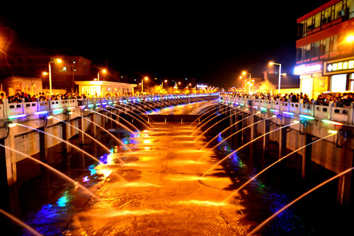 10月1日,國慶節(jié),代縣縣城關(guān)溝河景觀工程正式竣工蓄水。河道中,兩道鋼閘壩內(nèi),清清的河水碧波蕩漾,河道兩岸是兩條6米寬的景觀大道。道路內(nèi)側(cè),路燈成行,綠樹成蔭,風(fēng)光如畫。伴隨著優(yōu)美的樂曲,河道兩側(cè)的音樂噴泉噴珠吐玉,不斷變化著造型,在金色的陽光下不時閃現(xiàn)出道道彩虹。到了夜間,音樂噴泉在明亮的燈光映襯下,更是五彩繽紛,赤橙黃綠青藍(lán)紫,猶如彩練當(dāng)空舞。成為歷史文化名城一道亮麗的風(fēng)景。