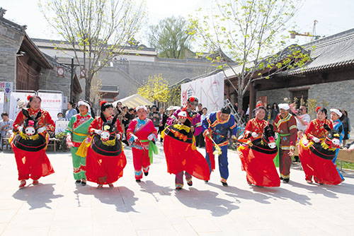 首期市集為期三天,今后將不定期舉辦此類活動(dòng),為全國(guó)各地的民間藝人提供一個(gè)創(chuàng)業(yè)、立業(yè)的平臺(tái),同時(shí)也為秀容古城的旅游發(fā)展注入新的活力,打造秀容古城旅游發(fā)展新地標(biāo)。圖為創(chuàng)意市集上的民俗表演張林泉李春達(dá)攝影報(bào)道