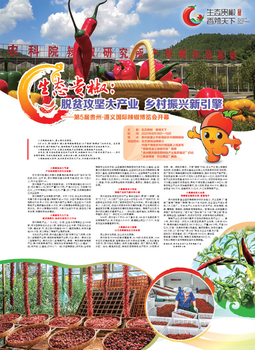 2020年,貴州省9個市州、48個重點(diǎn)縣、280余萬名椒農(nóng)參與發(fā)展辣椒產(chǎn)業(yè),其中貧困人口65萬,新增就業(yè)崗位1.7萬個,為脫貧攻堅發(fā)揮著重要作用。