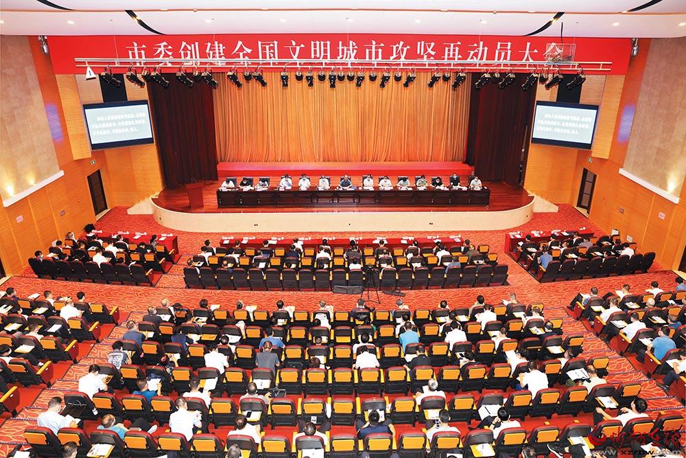 市委創(chuàng)建全國文明城市攻堅(jiān)再動(dòng)員大會(huì)會(huì)場。范濤 攝