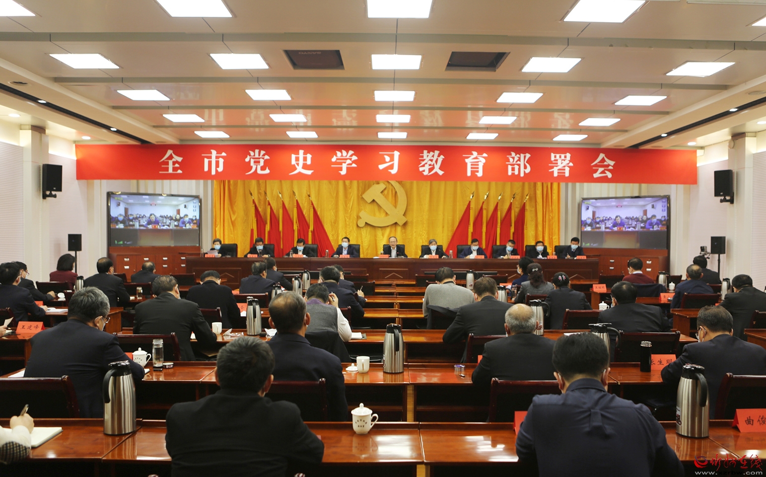 朱曉東主持會議并對貫徹會議精神提出要求。宮清華 攝 朱曉東在主持會議時強調(diào),要迅速行動,各級各部門要高度重視、深刻領(lǐng)會開展黨史學習教育的重大意義,迅速傳達本次會議精神,把思想和行動統(tǒng)一到中央、省委、市委部署上來,抓好貫徹落實;要深入學習,認真組織全體黨員干部學習黨史、新中國史、改革開放史、社會主義發(fā)展史,特別是各級領(lǐng)導干部要帶頭學、主動學、深入學,充分發(fā)揮以史鑒今、資政育人的作用,不斷提高政治判斷力、政治領(lǐng)悟力、政治執(zhí)行力,努力實現(xiàn)學史明理、學史增信、學史崇德、學史力行的目的;要抓好實踐,把“我為群眾辦實事”的要求貫穿學習教育始終,突出勤政務(wù)實為民主題,真正通過黨史學習教育,進一步提高各級各部門的工作質(zhì)量和水平。要通過學黨史、悟思想、辦實事、開新局,努力完成好全市經(jīng)濟社會發(fā)展各項目標任務(wù),以轉(zhuǎn)型出雛型蹚出一條新路來的新成果檢驗學習教育新成效。