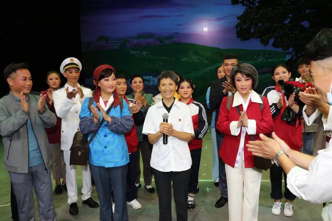 演出結(jié)束后,柳玉珍原型劉桂珍受邀上臺(tái)與各位演員親切握手,對(duì)演員們精湛的表演藝術(shù)表示敬佩。她說(shuō):“雖然我獲得了比較多的榮譽(yù),但跟《段家灣》中的柳玉珍相比還是有很大的差距。在以后的工作和生活中,我要以柳玉珍為榜樣,不忘初心,心懷感恩,幫助更多需要幫助的人。”