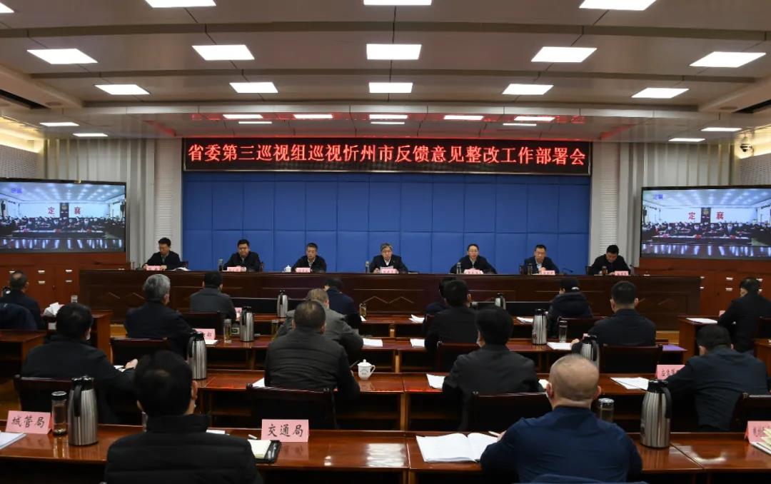 1月28日,省委第三巡視組巡視忻州市反饋意見整改工作部署會召開,安排部署專項巡視和專項檢查反饋意見的整改落實工作,切實推動整改任務(wù)落實落細落到位,以整改的實際行動推動全年各項工作取得良好開局。市委書記朱曉東主持會議并講話。市委副書記、政法委書記郭奔勝出席會議。市委常委、市紀委書記、市監(jiān)委主任劉卓良就監(jiān)督推動巡視反饋問題整改提出意見。市委常委、常務(wù)副市長趙新年安排部署涉糧巡視問題整改任務(wù)。市委常委、秘書長、統(tǒng)戰(zhàn)部長張文偉安排部署省委巡視整改專項檢查反饋問題整改任務(wù)。市領(lǐng)導(dǎo)溫建軍、張敏、武憲堂、范建民、賈玲香、耿鵬鵬、郭寶厚、袁小波出席。