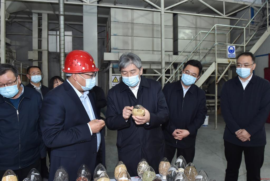 農(nóng)用物資儲備關(guān)系春耕備耕開展。在五臺縣山西嘉瑞種業(yè)有限公司、定襄縣鑫豐盛農(nóng)業(yè)科技有限公司,朱曉東實地察看并詳細了解化肥、農(nóng)藥、籽種等物資儲備情況,詳細了解籽種種植、加工、生產(chǎn)情況,聽取大豆玉米帶狀復合種植實施技術(shù)介紹并察看相關(guān)機械設(shè)備。朱曉東指出,種子是農(nóng)業(yè)的“芯片”,忻州雜糧種子資源豐富,要以市場需求為導向,堅持育種引種并重、良種良法配套、農(nóng)機農(nóng)藝融合,聚焦主要品種、關(guān)鍵環(huán)節(jié),匯聚資源、集中攻關(guān),助推農(nóng)業(yè)種業(yè)向“特”“優(yōu)”方向發(fā)展,確保農(nóng)業(yè)穩(wěn)產(chǎn)保供、農(nóng)民穩(wěn)步增收、農(nóng)村穩(wěn)定和諧。