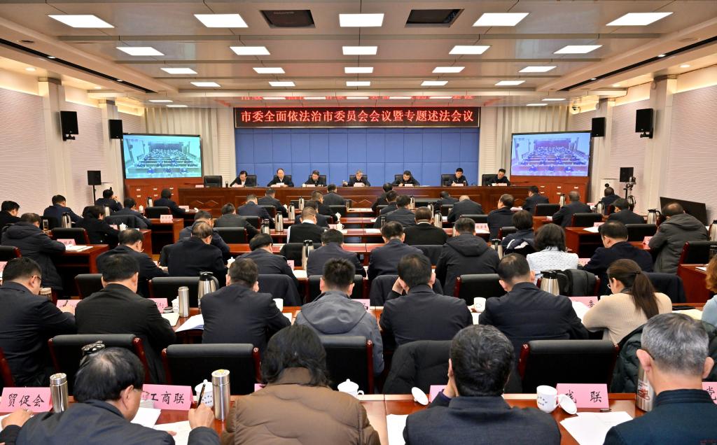 1月30日,市委全面依法治市委員會會議暨專題述法會議召開。會議深入學(xué)習(xí)貫徹習(xí)近平法治思想,認(rèn)真落實(shí)黨中央和省委部署要求,在全面總結(jié)工作、分析研判形勢、強(qiáng)化工作舉措的基礎(chǔ)上,認(rèn)真開展黨政主要負(fù)責(zé)人專題述法和“誰執(zhí)法誰普法”履職報(bào)告評議,進(jìn)一步統(tǒng)一思想、深化認(rèn)識,壓實(shí)責(zé)任、凝聚合力,全力推動法治忻州建設(shè)邁上新臺階。市委全面依法治市委員會主任、市委書記朱曉東出席并講話,市委全面依法治市委員會副主任、市委副書記、市長李建國主持會議。市委全面依法治市委員會副主任、市委常委、政法委書記、宣傳部部長王琳玉,市委常委、秘書長溫建軍,副市長、市公安局局長史洪波,市中級人民法院院長栗向東,市人民檢察院檢察長郭鴻以及市人大常委會秘書長李強(qiáng)、市政府秘書長張艮生、市政協(xié)秘書長王培雄出席會議。