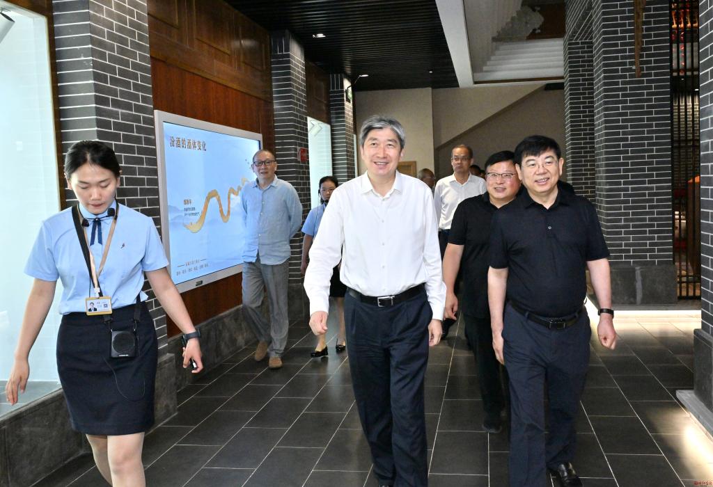 在中國汾酒城,朱曉東一行登上西城樓,俯瞰酒城全貌,聽取汾酒城的建設規(guī)模、生產經營、產品銷售等情況介紹。隨后,朱曉東一行走進汾酒博物館,通過館陳文物、文獻史料、文人墨寶等,切身感受汾酒集團的企業(yè)文化,了解企業(yè)歷史沿革、技術創(chuàng)新及汾酒的釀造技藝等情況。