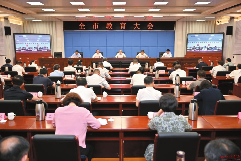 會議充分肯定近年來全市教育事業(yè)發(fā)展取得的成績,對教育強市建設各項重點工作作出全面部署。會議指出,要堅持不懈用習近平新時代中國特色社會主義思想鑄魂育人,一體化推進大中小學思想政治教育,培養(yǎng)德智體美勞全面發(fā)展的社會主義建設者和接班人。要堅持以人民為中心發(fā)展教育,推動義務教育優(yōu)質均衡發(fā)展,促進學前教育普及普惠和高中階段學校多樣化發(fā)展,前瞻性優(yōu)化區(qū)域教育資源配置,持續(xù)鞏固“雙減”成果,不斷提升基礎教育服務質量。要統(tǒng)籌實施科教興市、人才強市、創(chuàng)新驅動發(fā)展戰(zhàn)略,加快構建現(xiàn)代職業(yè)教育體系,增強高等教育綜合實力,培育壯大科技創(chuàng)新力量,不斷塑造高質量發(fā)展新動能新優(yōu)勢。要強化師德師風建設,優(yōu)化完善教師管理體制,厚植尊師重教社會風尚,大力培養(yǎng)鍛造一支師德高尚、業(yè)務精湛、結構合理、充滿活力的高素質專業(yè)化教師隊伍。要進一步深化教育領域綜合改革,進一步擴大教育開放合作交流,進一步建設全民終身學習的學習型社會,充分激發(fā)教育高質量發(fā)展的生機活力。