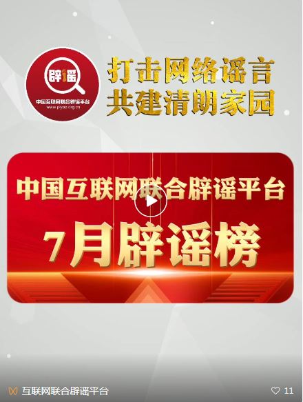 打擊網(wǎng)絡(luò)謠言 共建清朗家園 中國互聯(lián)網(wǎng)聯(lián)合辟謠平臺(tái)7月辟謠榜