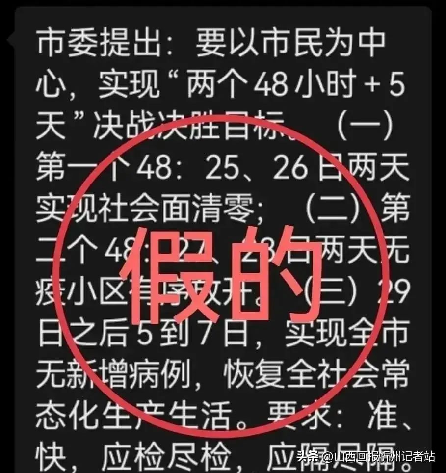 經(jīng)查,這是西安市10月份的政策,并不是山西,該消息在其他地市也有流傳。造謠者張冠李戴,故意去掉前邊的地名,讓人以為是本地消息,混淆視聽(tīng),制造混亂。請(qǐng)市民對(duì)網(wǎng)絡(luò)信息一定要保持客觀分析的態(tài)度,以官方發(fā)布為準(zhǔn),不造謠、不信謠、不傳謠。