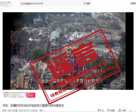 詳情:4月7日、8日,新疆阿克蘇地區(qū)拜城縣先后發(fā)生5.4、5.1級(jí)地震。震中位于無(wú)人區(qū),目前暫未收到人員傷亡或財(cái)產(chǎn)損失報(bào)告,當(dāng)?shù)赝ㄓ?、供電、交通正常。但有部分自媒體為博眼球、蹭流量,利用AI智能技術(shù)等手段拼湊網(wǎng)絡(luò)舊圖,發(fā)布拜城地震不實(shí)圖文、音視頻等信息,嚴(yán)重誤導(dǎo)網(wǎng)民。阿克蘇地區(qū)互聯(lián)網(wǎng)信息辦公室提醒,對(duì)在網(wǎng)上蓄意編造、傳播散布謠言,擾亂公共秩序等違法行為,網(wǎng)信部門(mén)將會(huì)同公安機(jī)關(guān)依法嚴(yán)厲打擊。(來(lái)源:“新疆網(wǎng)絡(luò)辟謠”微信公眾號(hào))