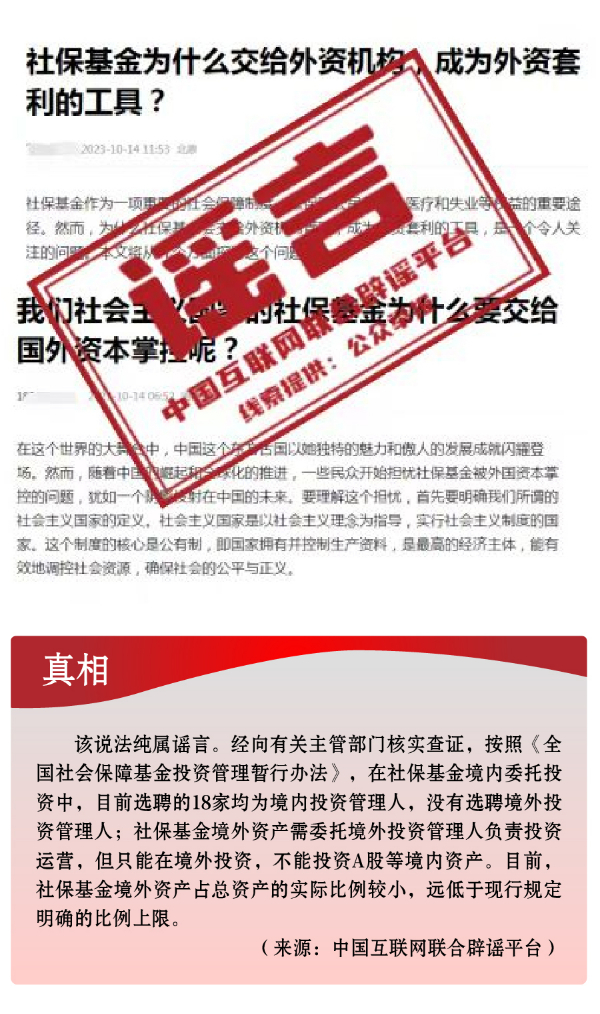 假冒權(quán)威杜撰政策類謠言,誤導(dǎo)公眾。3月以來,一些不法分子或機構(gòu)打著權(quán)威旗號,假冒國家機關(guān)、偽造政府公文、歪曲解讀政策,企圖行騙牟利。如,詐騙分子冒用國家機關(guān)名義,假稱“國家發(fā)放2024年鄉(xiāng)村振興扶貧補貼”“鄉(xiāng)村振興項目有國家級試點100個”“‘退稅綠色通道’加快退稅到賬速度”等,實施違法詐騙行為,給社會公眾造成極大信息和資金安全風險。還有人制造、傳播“我國城鄉(xiāng)居民醫(yī)保參保人數(shù)近年來持續(xù)下降,部分地區(qū)農(nóng)村出現(xiàn)醫(yī)保退保潮”“失業(yè)保險金只能領(lǐng)一次,最多領(lǐng)24個月”“我國社保基金全都交給外資機構(gòu)管理”等一系列與事實嚴重不符的涉公共謠言,迷惑性大、蠱惑性強,極易誤導(dǎo)公眾,對我國現(xiàn)有社保政策和相關(guān)工作造成負面影響。