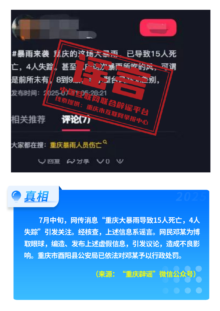 翻炒醫(yī)保舊謠 謊報(bào)地震預(yù)警 偽造警情通報(bào) 網(wǎng)信、公安嚴(yán)打自媒體發(fā)布不實(shí)信息 7月網(wǎng)絡(luò)謠言主要集中在公共政策、突發(fā)事件、社會(huì)民生等領(lǐng)域,假冒權(quán)威、憑空捏造,使用AI合成不實(shí)圖片和視頻,誤導(dǎo)公眾認(rèn)知,污染網(wǎng)絡(luò)生態(tài)。網(wǎng)信、公安等部門(mén)重拳出擊,堅(jiān)決打擊。 有人重新翻炒“醫(yī)?!畟€(gè)人賬戶(hù)’將全部取消”舊謠,故意歪曲醫(yī)保改革真實(shí)內(nèi)涵,嚴(yán)重誤導(dǎo)公眾對(duì)醫(yī)保改革政策的理解?!坝袑?zhuān)人上門(mén)服務(wù)激活醫(yī)保碼”,披著“公共服務(wù)”的外衣,實(shí)有詐騙之嫌和安全風(fēng)險(xiǎn)。憑空捏造“海南規(guī)定電動(dòng)自行車(chē)充電不能過(guò)夜、頭盔分三季”這一“奇葩規(guī)定”,以“新規(guī)”話術(shù),擾亂交通管理秩序。 近期,網(wǎng)上接連出現(xiàn)發(fā)布虛假“警情通報(bào)”的惡性造謠傳謠案件,炮制傳播“昆明駕車(chē)撞人案131人死亡”“杭州自來(lái)水接入糞水”及涉釋永信虛假“警情通報(bào)”,模仿“藍(lán)底白字”格式,杜撰聳人聽(tīng)聞細(xì)節(jié),損害政府公信力,嚴(yán)重?cái)_亂社會(huì)秩序?!霸菏款A(yù)測(cè)廣東將發(fā)生8級(jí)以上大地震”公然偽造專(zhuān)家聊天截圖,謊報(bào)地震預(yù)警。還有造謠者借盛夏高溫酷暑與洪澇災(zāi)害,編造“安徽淮北、山東泰安等地多人因高溫死亡” “重慶大暴雨導(dǎo)致15人死亡、4人失蹤”等謠言,蹭炒熱點(diǎn)、煽動(dòng)情緒。 此外,7月份正值暑期旅游旺季和水果等農(nóng)產(chǎn)品收獲季,有自媒體、商家借機(jī)編造傳播涉文旅及農(nóng)產(chǎn)類(lèi)謠言,干擾市場(chǎng)秩序,侵害消費(fèi)者權(quán)益。有商家違規(guī)使用人民大會(huì)堂建筑圖片標(biāo)識(shí)和名稱(chēng),仿冒人民大會(huì)堂賬號(hào),非法售賣(mài)、倒賣(mài)參觀門(mén)票,損害游客權(quán)益。個(gè)別商家剪輯發(fā)布“江蘇無(wú)錫陽(yáng)山水蜜桃斷崖式跌價(jià)、大量滯銷(xiāo)、爛大街”謠言視頻,再借機(jī)兜售假冒的陽(yáng)山水蜜桃,博人眼球惡意營(yíng)銷(xiāo),擾亂市場(chǎng)秩序。所謂“峨眉山人猴大戰(zhàn),游客墜崖,猴王被當(dāng)場(chǎng)擊斃”景區(qū)安全事件一度傳得沸沸揚(yáng)揚(yáng),相關(guān)視頻以驚悚情節(jié)博取關(guān)注,畫(huà)面實(shí)際是用AI合成拼接制作。 中央網(wǎng)信辦近日開(kāi)展“清朗·整治‘自媒體’發(fā)布不實(shí)信息”專(zhuān)項(xiàng)行動(dòng),重點(diǎn)整治惡意蹭炒誤導(dǎo)公眾、多種手段歪曲事實(shí)、不做標(biāo)注以假亂真、專(zhuān)業(yè)領(lǐng)域信息不實(shí)等問(wèn)題。一段時(shí)間以來(lái),網(wǎng)信部門(mén)會(huì)同相關(guān)部門(mén)依法處置假冒仿冒新聞媒體、政府機(jī)構(gòu)、企事業(yè)單位賬號(hào)3008個(gè),形成有力震懾;公安機(jī)關(guān)依法嚴(yán)厲查處造謠傳謠違法行為,上述傳播虛假“警情通報(bào)”以及“院士預(yù)測(cè)廣東將發(fā)生8級(jí)以上大地震”“海南規(guī)定電動(dòng)自行車(chē)充電不能過(guò)夜”“重慶大暴雨致15人死亡、4人失蹤”等造謠傳謠者均已被公安機(jī)關(guān)依法予以嚴(yán)厲處罰。 (責(zé)任編輯:梁艷) |