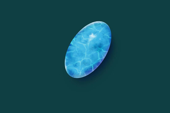 海紋石“石如其名”,有著和蔚藍大海一樣的顏色,其中藍綠色夾白色的形態(tài)就像海上的朵朵浪花。從礦物學的角度來說,它實際上是藍色針鈉鈣石的塊狀集合體。目前的研究認為,海紋石的藍色部分和白色的紋路部分的礦物成分相同,均含有針鈉鈣石。其中藍色部分完全由針鈉鈣石組成,而白色部分由針鈉鈣石、方解石兩種礦物構(gòu)成,每種礦物顆粒均是微米級別。嚴格來說,海紋石屬于針鈉鈣石的含銅變種,它的藍色得益于銅、鉻、釩等過渡元素,其中銅為主要的致色元素。