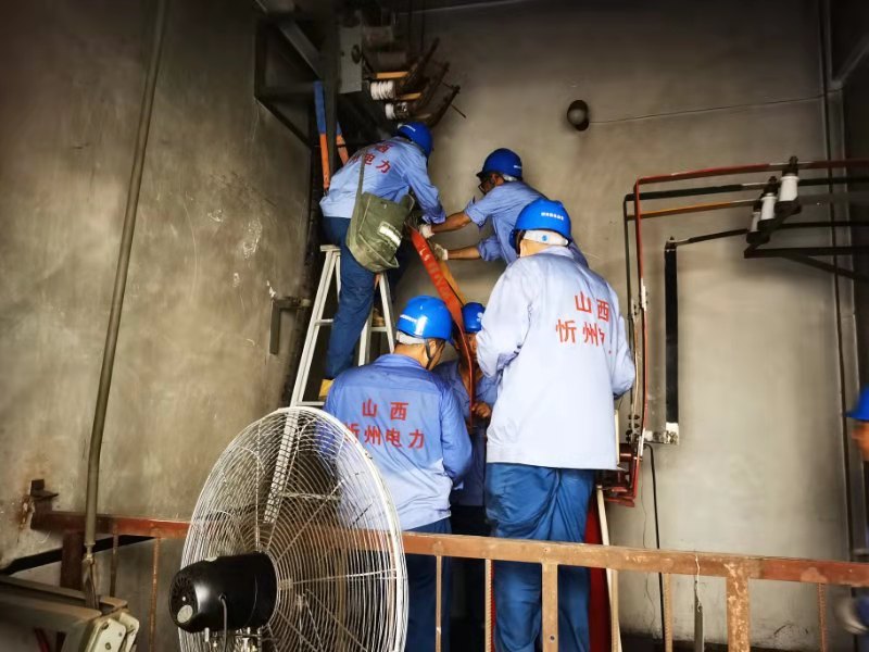 悶熱的天氣為搶修現(xiàn)場加足了熱動力,即使衣服濕透了也沒減緩保供電隊伍作業(yè)的速度。隨著變壓器吊平,隊員們有序穩(wěn)步開展著后續(xù)工作,為基礎塌陷側墊槽鋼,開展變壓器高壓試驗、母排加工、融管更換、觸頭修復等系列作業(yè),于16時20分圓滿完成搶修任務,在一片歡呼聲中送上了可靠電。
