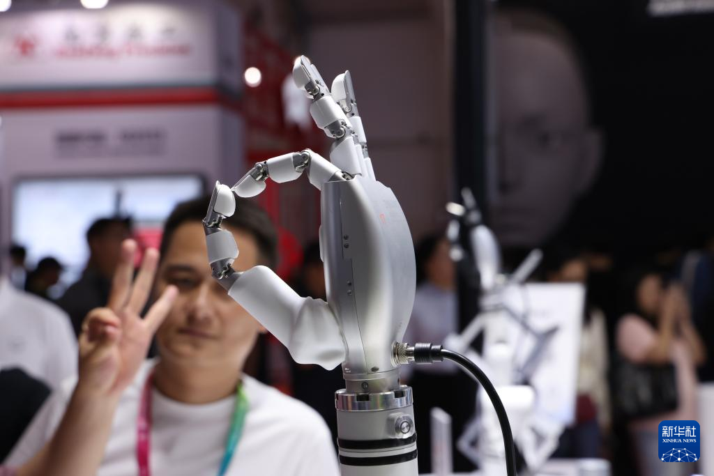 8月8日,觀眾在2025世界機(jī)器人大會(huì)上觀看展示的一款靈巧手。新華社記者 金立旺 攝
