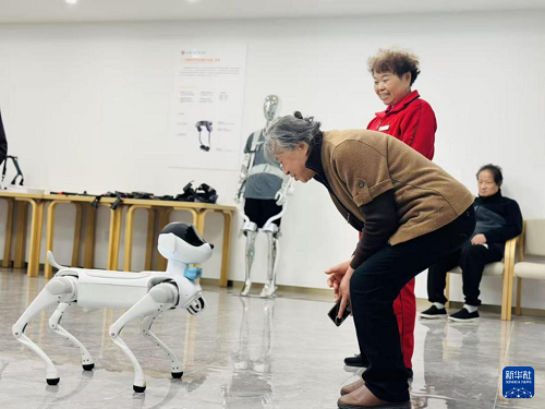 浙江烏鎮(zhèn)智能養(yǎng)老中心內,院內老人正與機器狗互動。新華網(wǎng)發(fā)(鐘月英 攝)