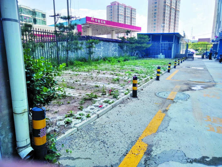 4號樓車庫東端8個露天車位被地樁鎖死