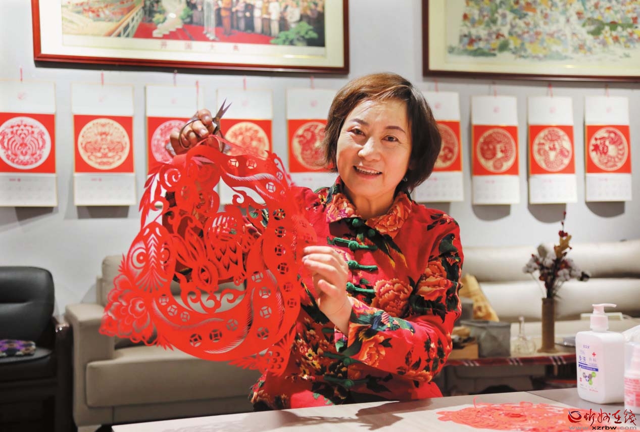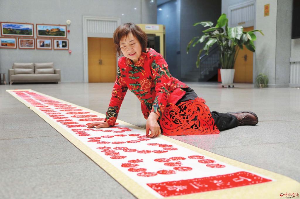 在位于岢嵐縣新時代文明實踐中心的非遺工作室內(nèi),柔和的燈光下,隨著紙屑紛紛落地,又一幅剪紙作品《金蛇賀歲》在非遺傳承人韋東梅的手中誕生了?!罢?00幅了!”摘掉老花鏡,韋東梅活動活動手指,雖然連續(xù)工作略顯疲憊,但從她的臉上看到更多的是作為創(chuàng)作者的滿足。