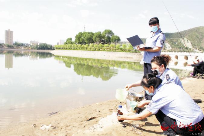 為保障地表水水質(zhì)穩(wěn)定達(dá)標(biāo),市生態(tài)環(huán)境局五臺(tái)分局的環(huán)保衛(wèi)士們冒著酷暑,頂著熱浪,穿行在河流、水庫(kù)之間,取水、化驗(yàn)、存檔,為制定水污染防治措施提供第一手資料。圖為該分局工作人員在唐家灣水庫(kù)提取水樣。金俊賢 攝