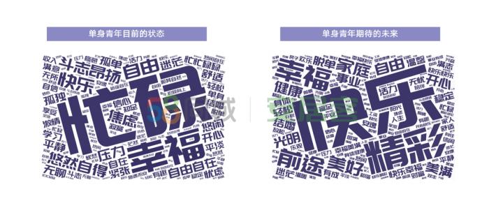 而對(duì)于未來(lái),單身青年們最希望自己能“快樂(lè)”,追求“自由”“精彩”的人生,期望擁有“美滿”“幸?!钡摹扒巴尽?。(完)