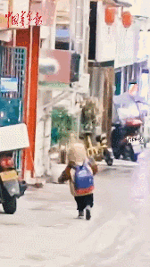圖片來源:人民視頻截圖 放學(xué)后 一名小男孩背著小書包 媽媽帶他去買零食 開心地一蹦一跳