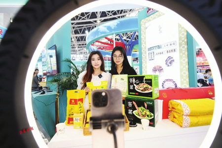 4.第六屆山西文化產(chǎn)業(yè)博覽交易會(huì)上,各路主播紛紛亮相,為當(dāng)?shù)靥禺a(chǎn)代言、促銷(xiāo)。