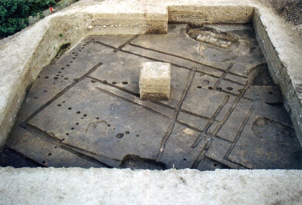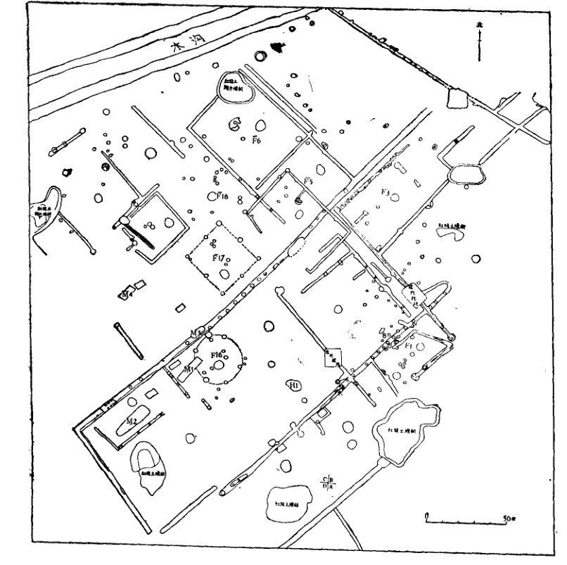 1980年11月,四川省文管會、四川省博物館與廣漢縣文化館組成聯(lián)合發(fā)掘隊,在三星堆地點東側進行發(fā)掘,發(fā)掘面積1100平方米,于次年5月結束工作,發(fā)現(xiàn)房址共有18座。這些房址平面形狀有方形、長方形和圓形。通過對柱洞和溝槽推算,房屋面積一般在10-25平方米之間,多在一側開門,門的朝向不一,少數(shù)房內有隔墻(如F2)。居住面建在生土層上,較堅實,可能經(jīng)過踩踏或拍打,少數(shù)居住面上加了一層白膏泥。