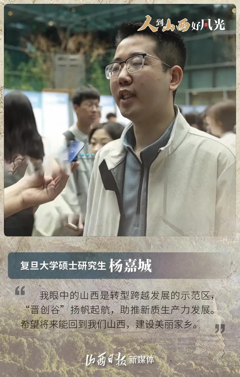 人到山西好風(fēng)光 招才引才亮誠(chéng)意 4月22日 山西省啟動(dòng)“人到山西好風(fēng)光”人才宣介 上海專場(chǎng)活動(dòng) 11個(gè)市結(jié)合本地資源優(yōu)勢(shì) 亮相10所上海高校 宣介現(xiàn)場(chǎng) 多位山西籍學(xué)子化身“三晉代言人” 分享他們眼中的家鄉(xiāng)