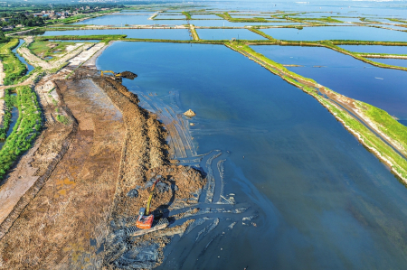 圖為正在進行二期生態(tài)修復的鹽湖。