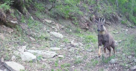 鯨偶蹄目??瓢吡鐚俨溉閯游?,被列入《世界自然保護(hù)聯(lián)盟瀕危物種紅色名錄》,對原生性森林灌叢環(huán)境依賴度高,被稱為“巖壁舞者”。2025年9月,五臺山景區(qū)首次用紅外相機(jī)記錄到其蹤跡,印證五臺山山地森林生態(tài)系統(tǒng)的持續(xù)改善。