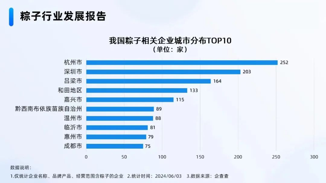 粽子行業(yè)發(fā)展報(bào)告中顯示,呂梁市在我國粽子相關(guān)企業(yè)城市分布中,排到了第三名。